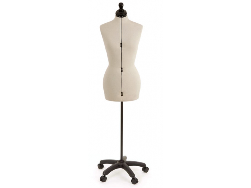 4 nastavitelné části. Nastavení velikostí se provádí pomocí 10ti dobře ovladatelných zapuštěných otáčivých kotoučů (při otáčení kotouči si v okénkách nastavíte požadované míry). Plná ramena zaručí perfektně padnoucí rukávy. Figurína má moderní povrch v přírodní barvě. Pro lehkou manipulaci je na figuríně stojan s pěti kolečky.