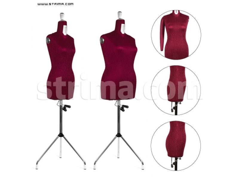 Figurína regulovatelná (žena), rozšiřitelná od velikosti 42 až na velikost 54 (italské velikosti), které odpovídají velikostem v Burdě 36-48 (česká, německá velikost). Má také poniklovaný podstavec a nastavitelnou výšku.