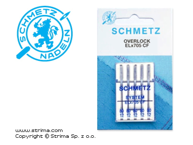 SCHMETZ jehly pro domácí šicí stroje - coverlock ELx705 CF, 5kusů 5x65, jehla je určena na universální materiály,má lehce zakulacenou špičku a povrch je pochromovaný pro lepší průnik materiálem a delší životnost. Jehly mají také označení jehly SY2922, SY