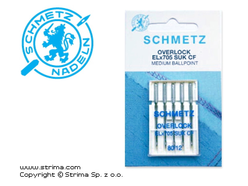SCHMETZ jehly pro domácí šicí stroje - coverlock ELx705 CF, 5kusů 5x80, jehla je určena na universální materiály,má lehce zakulacenou špičku a povrch je pochromovaný pro lepší průnik materiálem a delší životnost. Jehly mají také označení jehly SY2922, SY