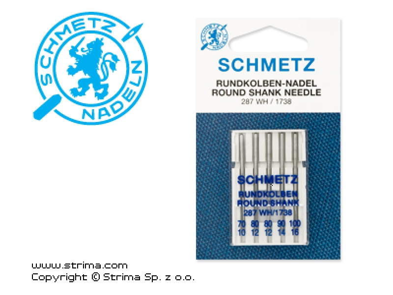 SCHMETZ s kulatým dříkem jehly 287WH-738 5pcs. 1x70, 2x80, 1x90, 1x100
