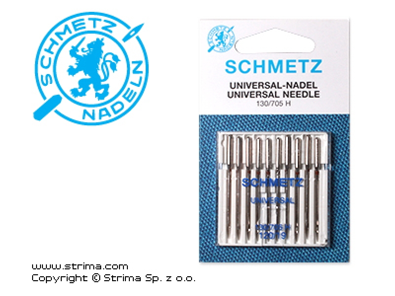 Universální jehly SCHMETZ mají lehce zaoblené hroty a vyrábějí se ve velkém výběru velikostí. Používají se pro nejběžnější typy látek a materiálů.Pro lepší orientaci jehel pro domácí šicí stroje jsou jehly SCHMETZ takto označeny- UNIVERSÁL (STANDARD) - bez značek, BALL POINT (kulaté hroty - pro jersey a pleteniny) - bez označení, STRETC H- žlutá barva, JEANS/DENIM - modrá barva, MICROTEX (pro kepr a hedvábí)- fialová barva, EMBRODIERY (pro vyšívání) - červená barva, QUILTING (pro patchwork) - zelená barva, SP SUPER STRETCH - oranžová barva.
