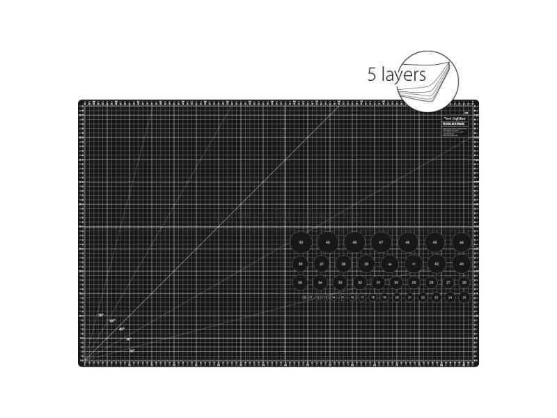 Podložka s vyznačenými úhly a rovnoběžnými čarami, velikost: 90 x 60 cm. Je vyrobena ze speciálního materiálu, který se po řezání uzavře a podložka zůstane hladká. Oboustranná, což navíc prodlužuje její životnost. Ideální pro řezání patchworkových prvků.