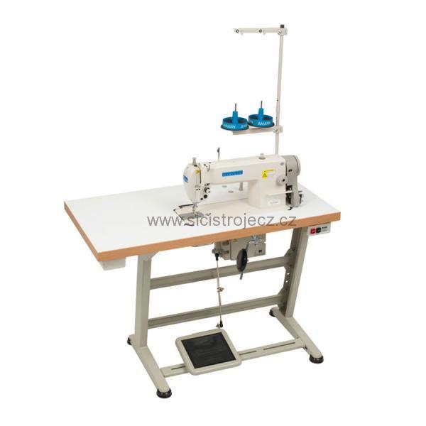 1-jehlový, plochý šicí stroj se spodním ponorným a jehelním podáváním. Standardní, horizontálně uložený chapač. Vhodný pro šití středně silných materiálů. Délka stehu 0-5 mm. Bez automatizačních prvků.