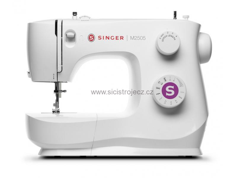 Šicí stroj Singer M2505 je domácí mechanický šicí stroj s 10 druhy stehů včetně 4krokové knoflíkové dírky, regulací délky stehu a kovovým rámem.