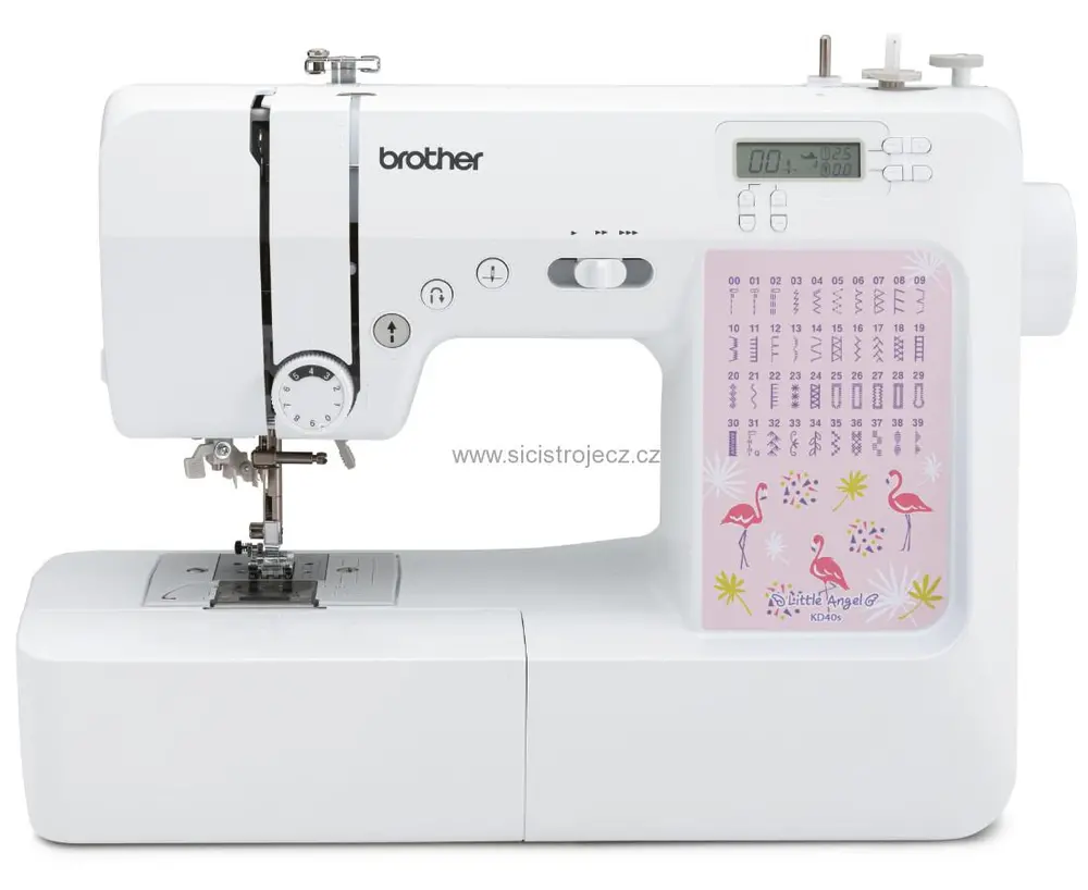 Šicí stroj Brother KD40S je japonský elektronický šicí stroj perfektní jak pro děti, tak pro jejich maminky. Děti ocení hlavně chránič prstů a regulaci rychlosti - stroj šije jak pomaličku krokem, tak normální rychlostí - záleží jen na vás, jak rychle chcete, aby šil. Zároveň je to už stroj, který dětem vydrží až do dospělosti!
