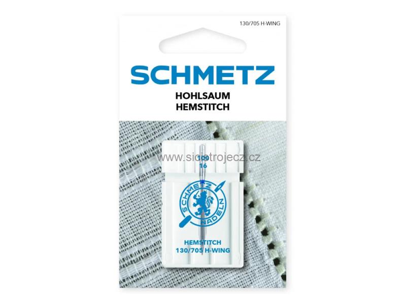Wing SCHMETZ pro dekorativní stehy a obrubování. 1x100. WING jehly jsou pro domácí šicí stroje s chapačem axiálním rotačním.