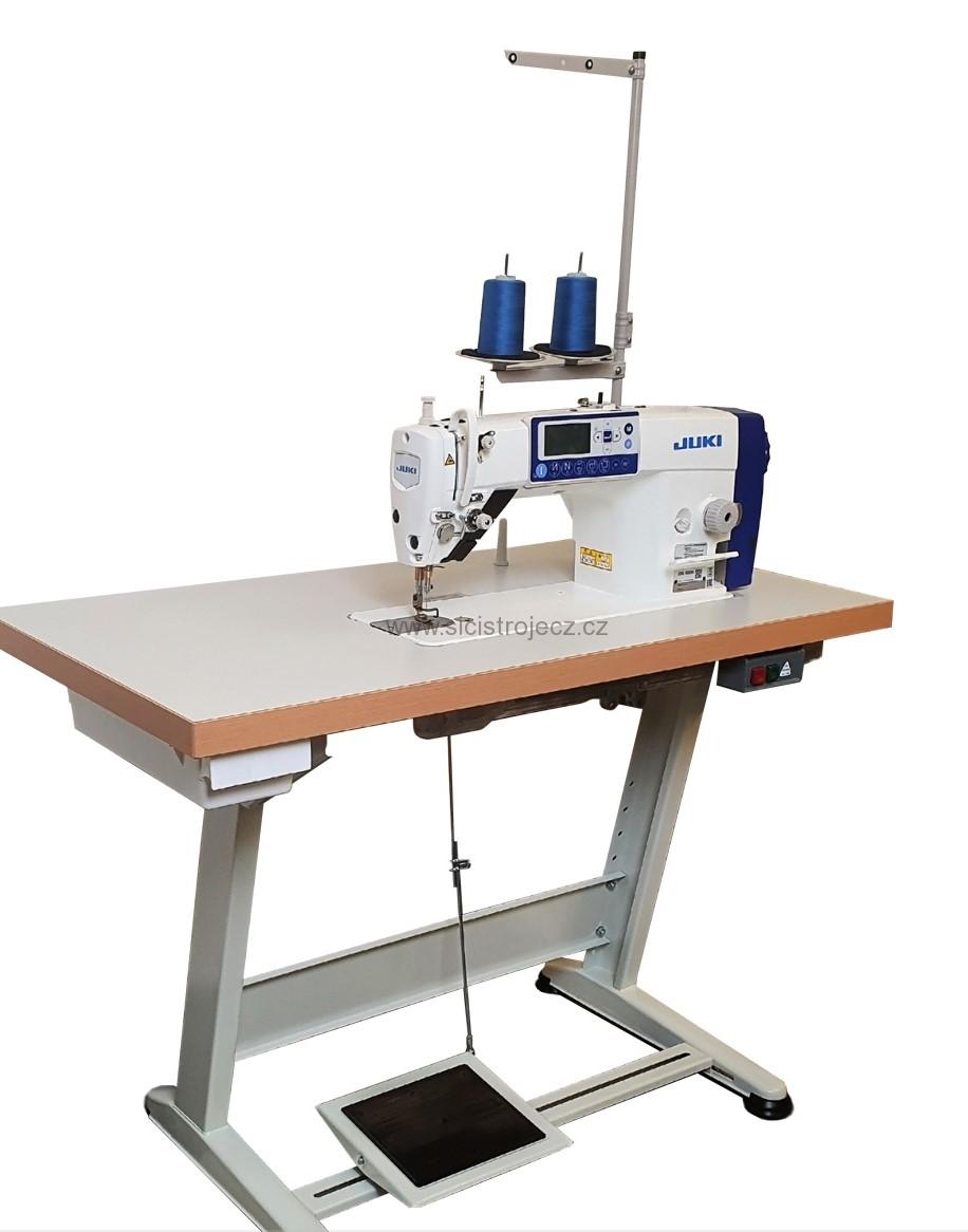 Vysokorychlostní 1-jehlový šicí stroj JUKI na šití těžkých materiálů se spodním podáváním a servomotorem v hlavě, centrálním mazáním pro dlouhou životnost, dlouhé rameno 303 mm (mezi jehlou a hlavou stroje), automatickým odstřihem niti, programovatelné zapošívání s volbou počtu stehů, osvědčený systém bubínkového odstřihu, automatický zdvih patky, přidržovač niti, programovatelný panel s celou řadou funkcí, komplet s výškově stavitelným stavcem, plnohodnotnou deskou 105x55cm s ABS přední hranou a měřítkem, zásuvka na nářadí, servo motor v hlavě 1x240V s úsporným provozem