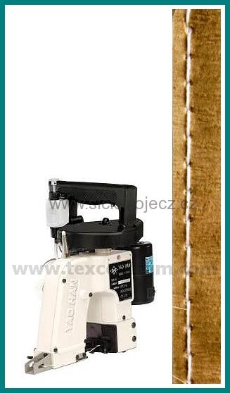 Průmyslový šicí stroj na uzavírání pytlů šitím, automatický odstřih niti, centrální mazání pro dlouhou životnost, jednonitný řetízkový steh, délka stehu 7,2mm, 1700 ot./min., napájení 1x240V, vhodné pro šití různých druhů pytlů jako napr. papírových, jutových, PE, atd., napájení 1x240V, 50Hz